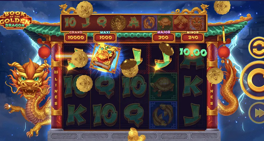 The mystical Golden Dragon Book serves as a special symbol that activates the Multichance feature. During free spins, this book randomly accumulates symbols as you play. All collected symbols transform into expanding symbols during the free spins round, boosting your chances for massive wins!