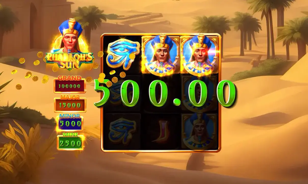 Pharaon’s Sun rises over the desert to unveil a slot of epic proportions! Step into the realm of ancient gods, where golden reels blaze under the sacred sun. With mystical symbols, divine surprises, and treasures fit for a king, this 3×5 adventure brings the power of the pharaohs straight to your screen. Let the legend unfold!