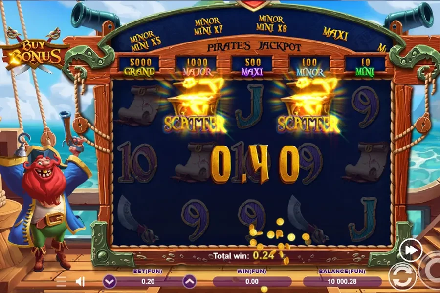 Yo ho ho and a bottle of rum! Our ship is waiting for you, a true lover of adventure and courage! Your eyes will burn with enthusiasm, and your blood will boil with excitement! Embark on an enchanting adventure on a 5×3 field, which contains 25 lines, with the help of which you will feel all the courage from the sea adventures of desperate pirates!